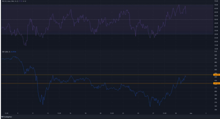 OBV ასევე გაიზარდა ბოლო რამდენიმე დღის განმავლობაში. ორი ნარინჯისფერი ხაზი არის დონეები, რომლებიც მყიდველებს სურთ ნახონ გატეხილი ქვედა ვადებში OBV-ზე. ეს მიუთითებს კარგი შესყიდვის ზეწოლაზე და სტაბილურ მოთხოვნილებაზე AVAX-ის ამაღლების მიღმა.