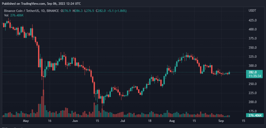 BNB-ის ფასი ამჟამად $282,04 დიაპაზონშია. ამ მონეტის საბაზრო კაპიტალის ღირებულება შეფასებულია $45,503,306,356. ამავე მონეტის 24-საათიანი ვაჭრობის მოცულობა შეადგენს დაახლოებით $868,165,087.