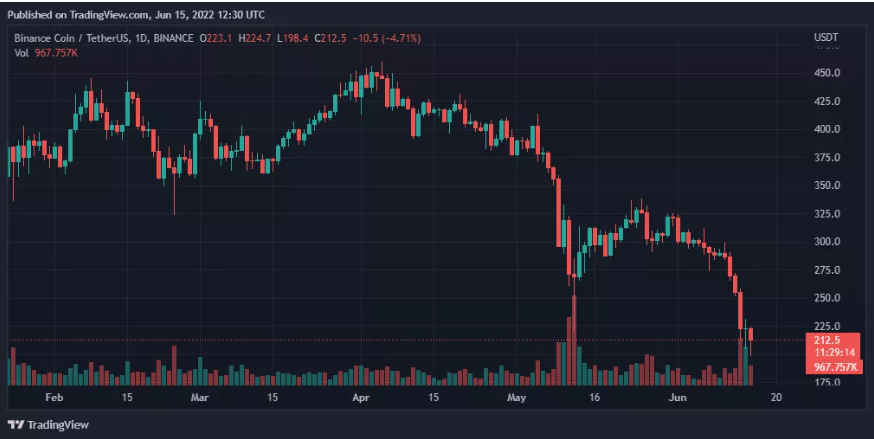 BNB-ის უახლესი მონაცემები აჩვენებს, რომ ბოლო 24 საათის განმავლობაში ის 2,75%-ით დაეცა. თუ შევადარებთ ამ მონეტის შვიდდღიან შესრულებას, მან დაკარგა 26,43%. Binance Coin-ის ზარალი იზრდება, რაც კიდევ უფრო დაბალზე მიუთითებს.