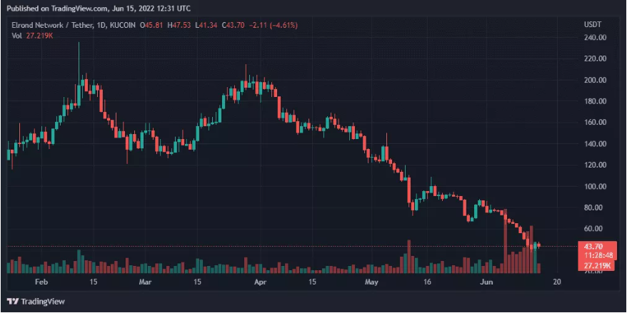 ბაზრის ცვალებადობის გამო რთული ვითარების წინაშე დგას ელრონდიც. შედეგი იყო დაცემის აღორძინება, რადგან ის დაეცა 0.65% ბოლო 24 საათის განმავლობაში. შედარებისთვის, ბოლო შვიდი დღის ზარალი დაახლოებით 34,54%-ია. ზარალის ზრდამ გამოიწვია მისი ფასის 43,80 დოლარამდე შემცირება.